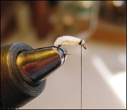 To make this fly more durable, add a coat of tying cement over the entire thread body just before you tie the wings on. I noticed that the body of this fly would unravel with only a few fish...but the darned wing stayed on.